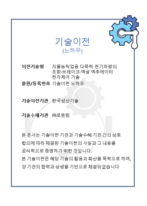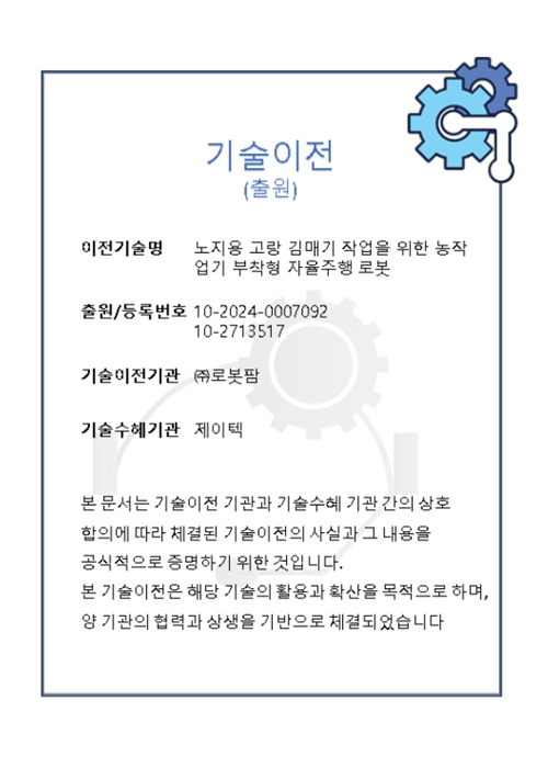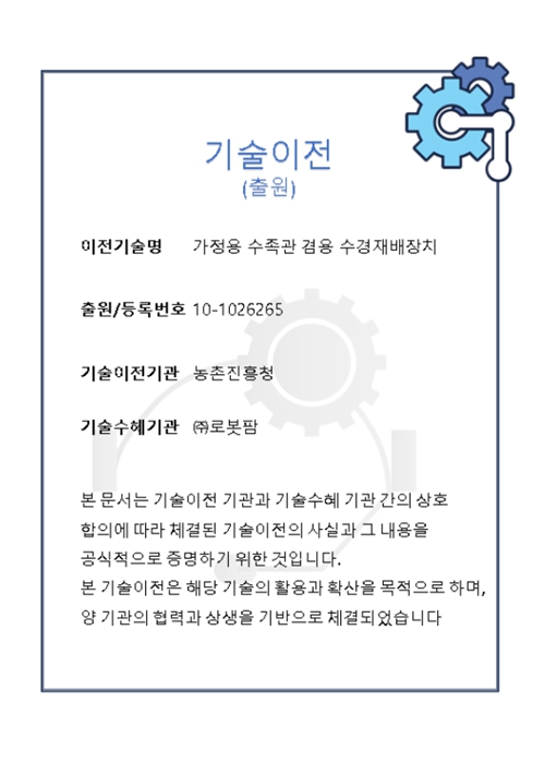 기술이전기관 : (주)로봇팜
