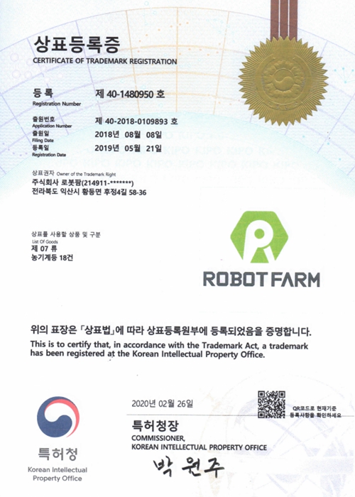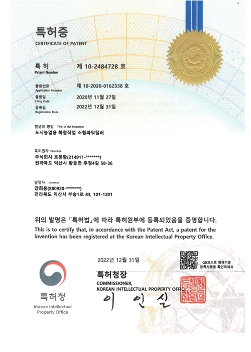 ㈜로봇팜은 다수의 특허와 인증을 보유하고 기술혁신상 등 다양한 수상을 통해 경쟁력을 입증했으며,