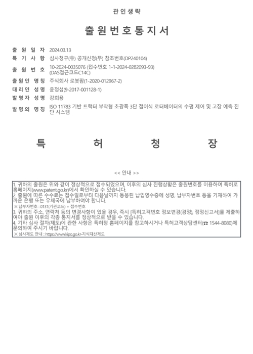 이전기술명 : 농업용 로봇 및 이의 제어방법