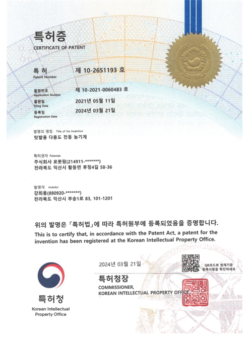 다양한 특허와 인증, 그리고 수상 실적을 통해 스마트 농업 선도기업으로서의 가치를 입증합니다